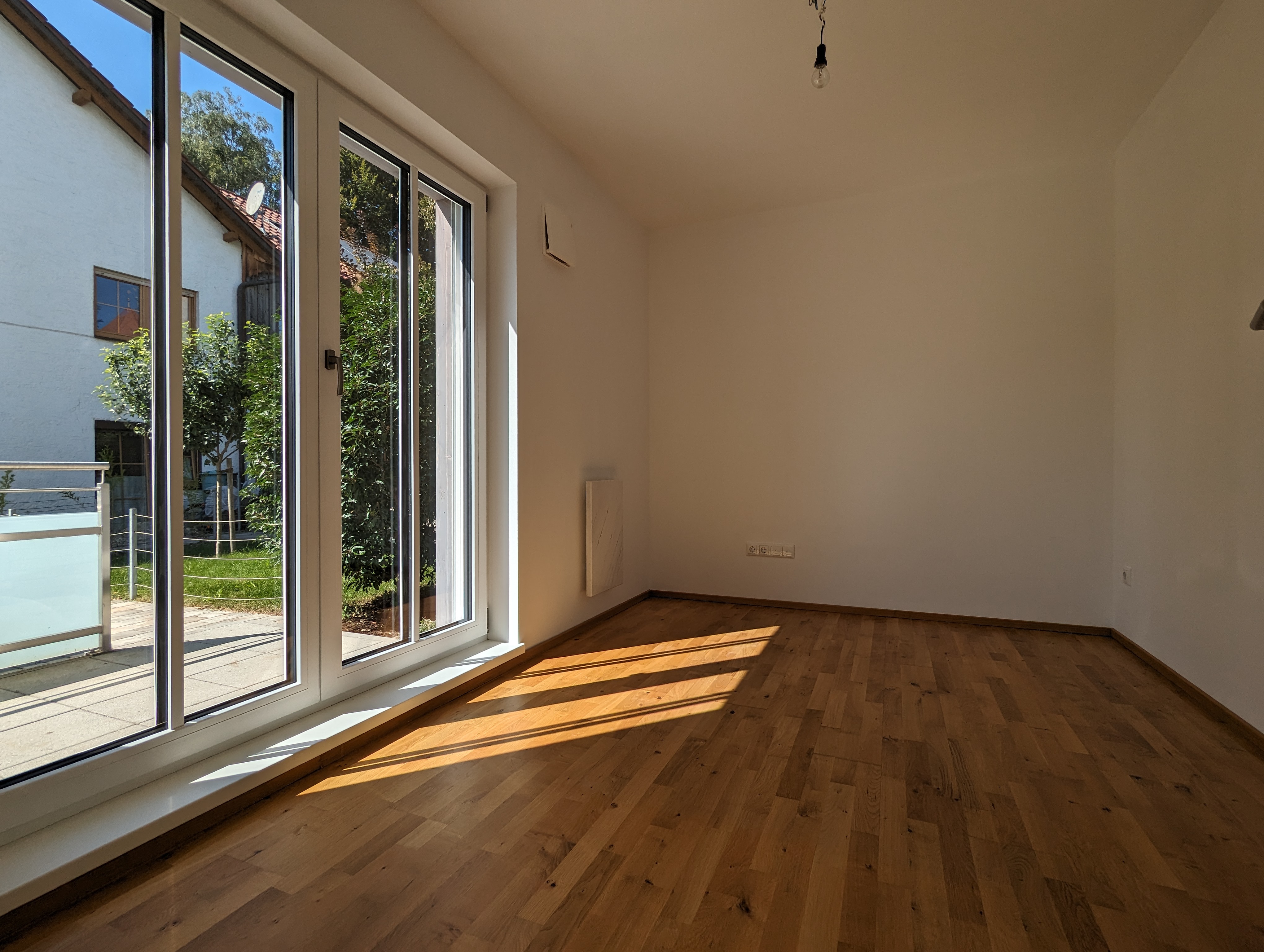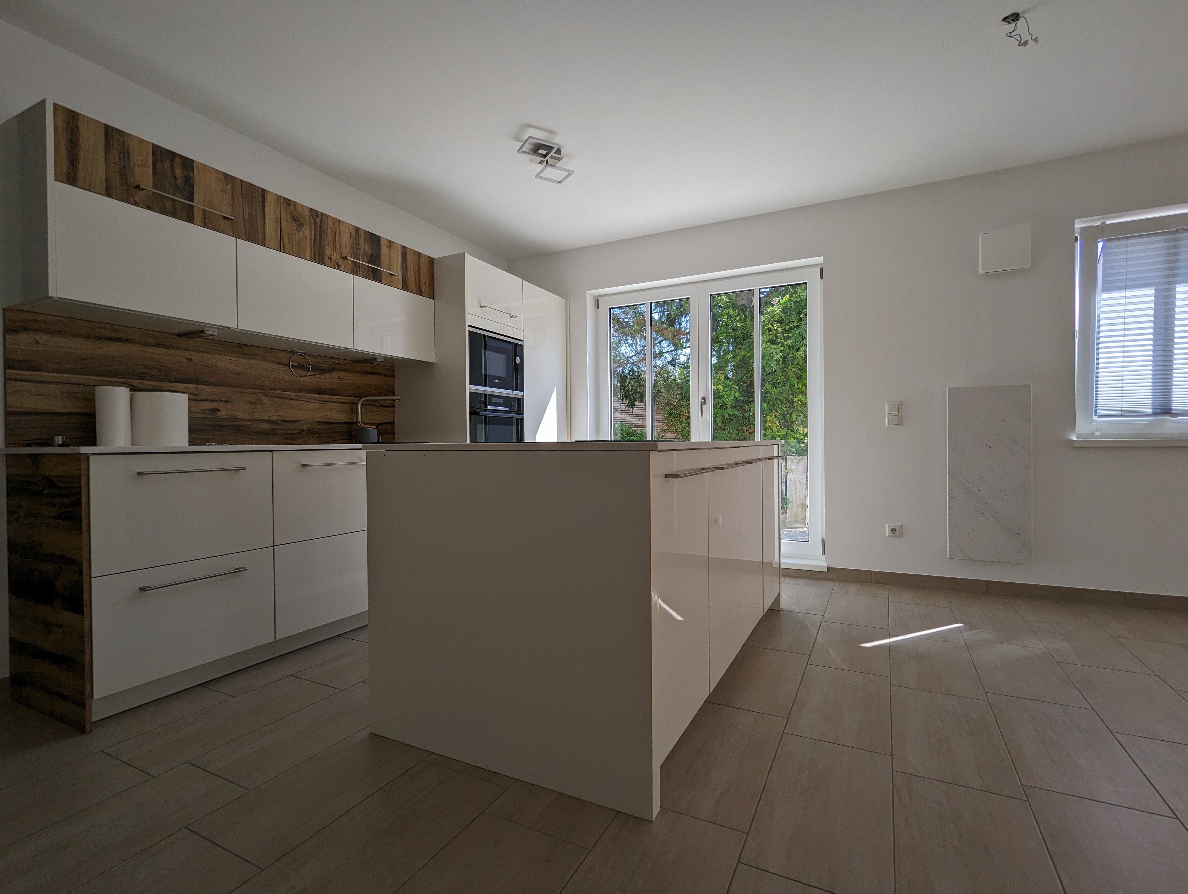 Beschreibung:Diese elegante und sehr gepflegte 4-Zimmer-Wohnung befindet sich im Erdgeschoss eines 6-Familienhauses in ruhiger, schöner, zentraler Wohnlage von Buchbach. Das ganze Gebäude wurde 2019 in gesunder Holzständerbauweise errichtet, die Innenwände sind Ziegel. Es gibt eine PV-Anlage, die die Heizenergie unterstützt und so für nachhaltiges Heizen sorgt; perfekt in Verbindung mit der Luft-Wasser-Wärmepumpe. Somit ist dieses Objekt ein KFW-Effizienzhaus 40 Plus.