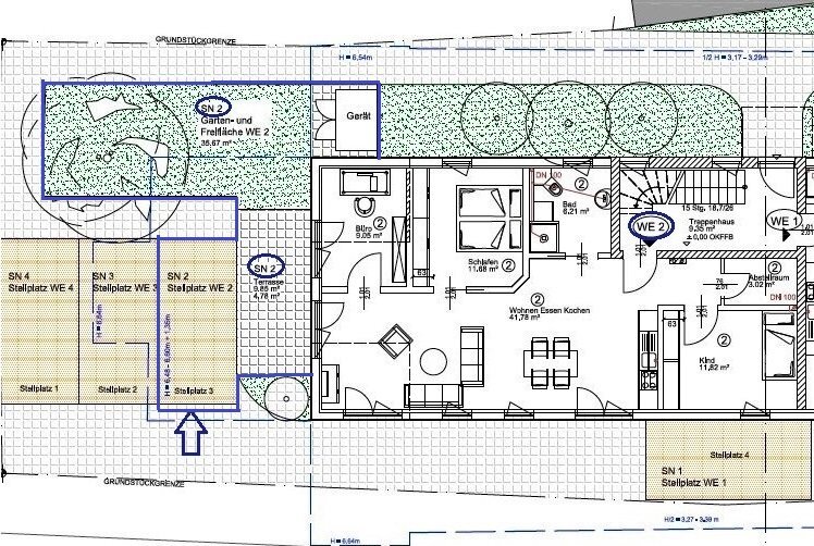 Zur Wohnung gehören selbstverständlich ein ca. 13 m² großen Kellerabteil, ein Autostellplatz (zzgl. € 30,00 mtl.) vor dem Haus sowie ein Schuppen auf der Nordseite des Hauses.