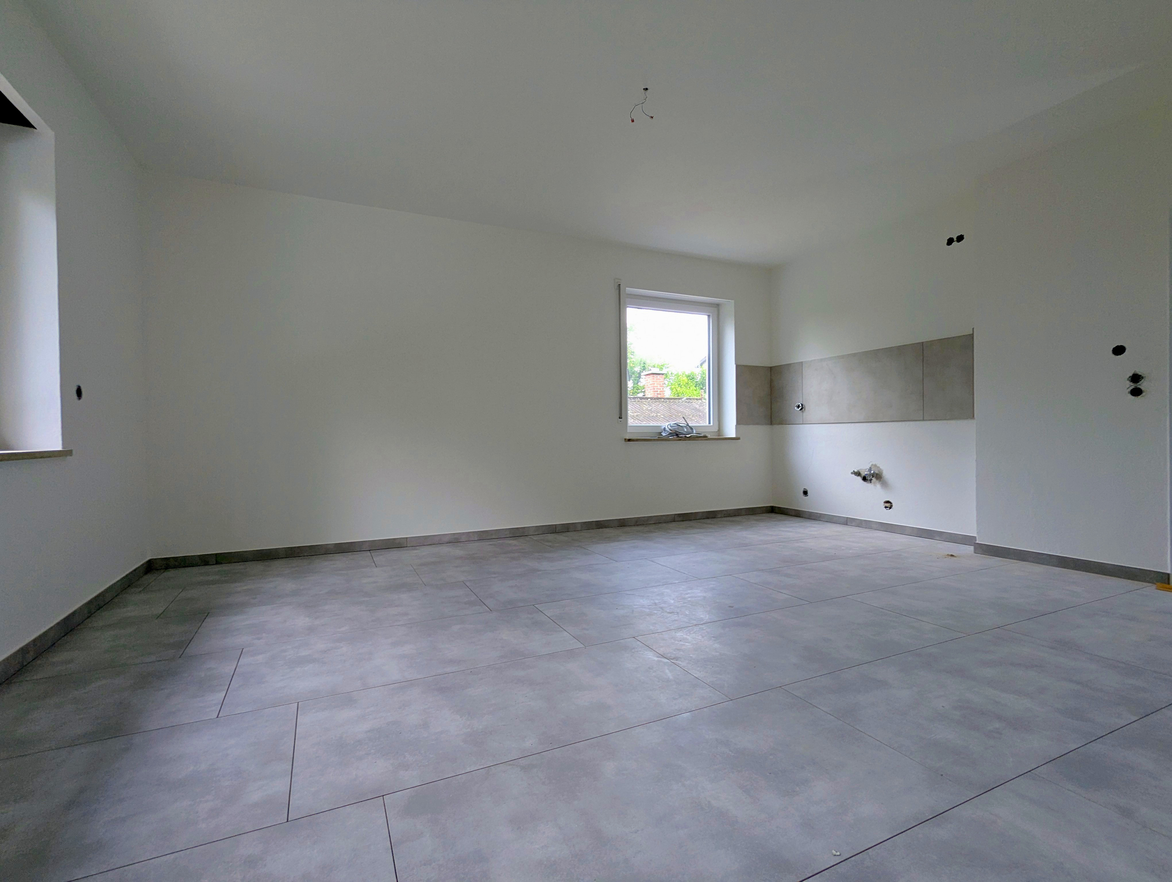 Die Wohnfläche von knapp 100 m² verteilt sich auf ein sehr großes Wohnzimmer mit einer angrenzenden, und zum Wohnbereich offen gehaltenen, Wohnküche, ein Duschbad mit Fenster, ein komfortables Schlafzimmer und ein Kinder-/ oder Arbeitszimmer. Das Bad ist mit einer nahezu bodenebenen Dusche versehen; auch ein Waschmaschinenanschluss ist vorhanden. Zusätzlich gibt es noch ein separates Gäste-WC. Die Wohnküche bietet viel Platz für eine geräumige Einbauküche und einen schönen Essbereich. Die Diele, das Bad, das Gäste-WC und die Küche sind mit hellgrauem und modernem Fliesenbelag versehen; der Wohnbereich und die Schlafzimmer werden mit Vinylboden ausgestattet. Die Türen werden ebenfalls erneuert.