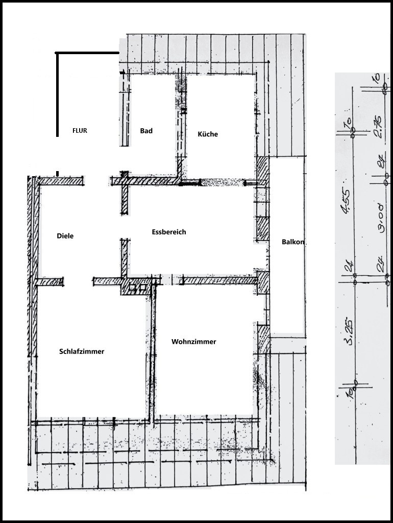 Die Wohnung hat einen großen Essbereich Wohnküche ist separat und hat auch einen großen Essbereich. Eine Einbauküche ist nicht vorhanden.