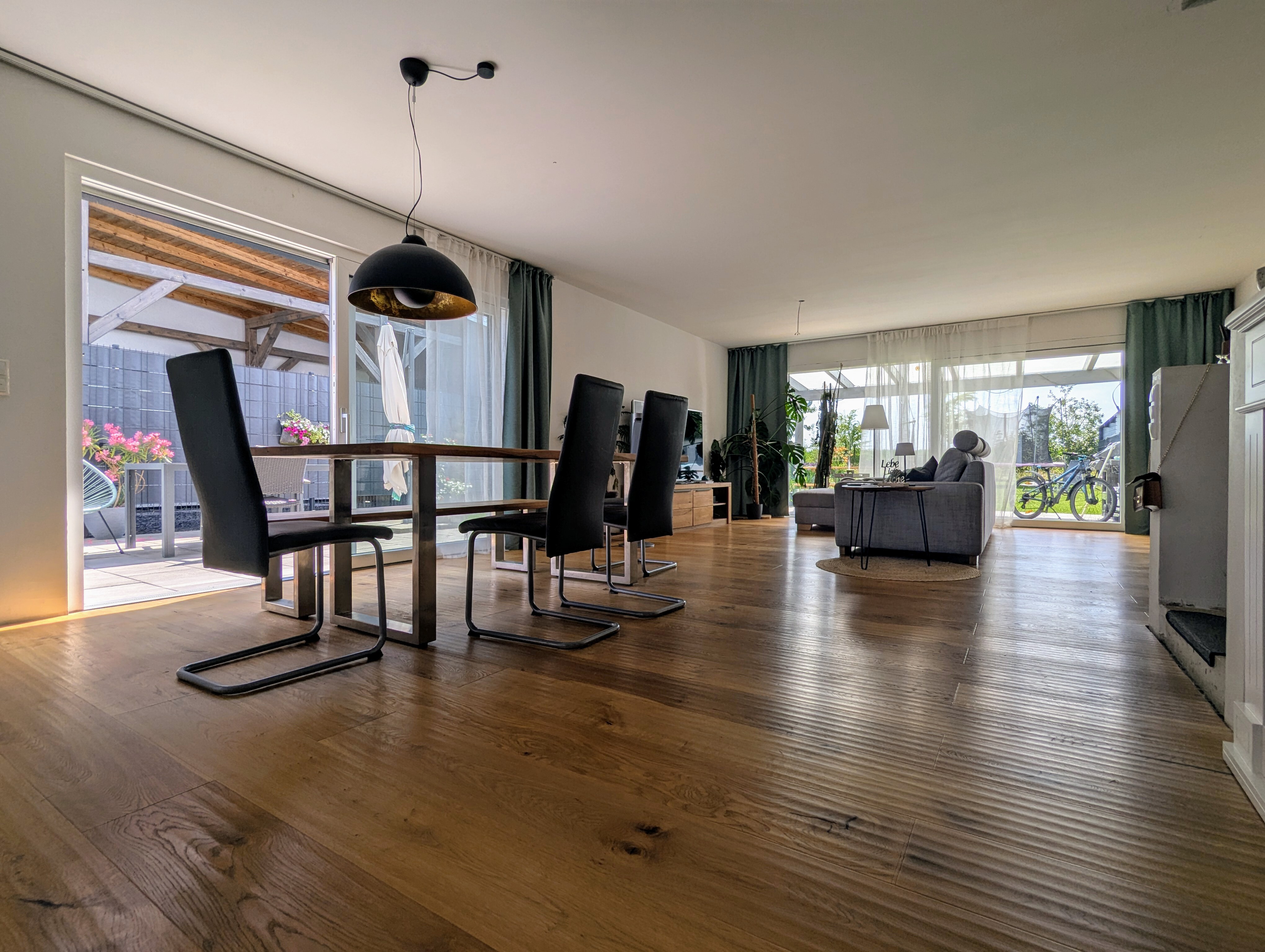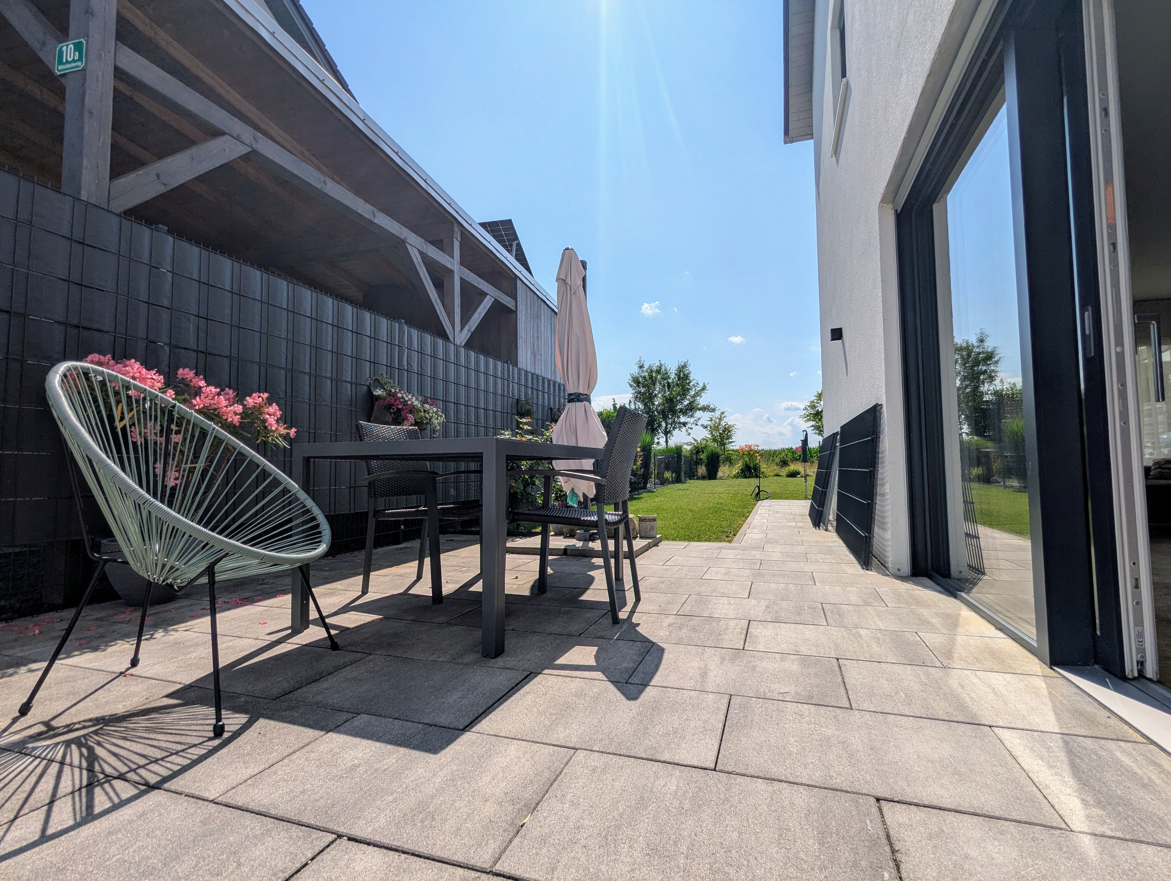 Entdecken Sie Ihr neues Zuhause - in diesem modernen Reiheneckhaus! Dieses vor kurzem erbaute (BJ 2018 / Erstbezug 2019) und nahezu neuwertige Endhaus eines 3-Spänners bietet Ihnen mit einer großzügigen Wohnfläche von ca. 154 m² höchsten Wohnkomfort und eignet sich bestens für eine 3-4-köpfige Familie. Das Grundstück umfasst ca. 330 m² und bietet ausreichend Platz bzw. Gartenfläche. Das Erdgeschoss besticht durch seine offene Raumgestaltung: Wohnen, Essen und Kochen - alles ist hier vereint. Die top-moderne und sehr hochwertige Nolte-Einbauküche mit Geräten der Firma Neff gehört zum Objekt und ist im Mietpreis bereits enthalten. Besonders zu erwähnen ist noch der tolle Eicheparkettboden - dieser sorgt für eine angenehme Wohnatmosphäre. Sie finden im Erdgeschoss noch eine kleine Diele (für Garderobe), ein Gäste-WC, den Technikraum sowie einen kleinen Abstellraum. Das Obergeschoss ist mit einem pflegeleichten Laminat versehen. Sie finden auf dieser Etage zwei komfortable Schlafzimmer - mit einer Größe von ca. 20 und 25 m², eines davon mit Ankleidebereich; und ein voll ausgestattetes Badezimmer mit Wanne, bodenebener Dusche und einem Wäscheabwurf zum Technikraum im Erdgeschoss. Das Bad ist modern gefliest und mit hellgrauen Boden-/ und weißen Wandfliesen versehen. Das Dachgeschoss verfügt über ein großes Studio (mit Küchenanschluss) und ein Duschbad, sowie einer Abstellmöglichkeit. Das Duschbad wird zeitnah installiert und wird, wie der Rest des Hauses, modern gestaltet! Diese Etage eignet sich bestens als Eltern-/ oder Arbeitsbereich. Hier finden Sie einen geschmackvollen und pflegeleichten Design-Vinylboden. Highlight des Hauses ist der schöne Außenbereich. Sie finden hier zwei Terrassen (Süd-/ und Westseite), eine davon ist überdacht. Der Garten grenzt an eine landwirtschaftliche Fläche an, somit blicken Sie immer auf Grünflächen. Hier lassen sich entspannte Stunden verbringen, sei es beim Spielen, Grillen oder einfach nur Relaxen! Das Haus ist mit einer Wärmepumpe ausgestattet, die für eine optimale Temperaturregelung und Energieeffizienz sorgt; perfekt in Kombination mit der Wohnraumbelüftungsanlage (mit Wärmerückgewinnung). Alle Räume verfügen über eine sparsame Fußbodenheizung. Die Fenster verfügen über Rollläden. Ebenso ist eine Netzwerkverkabelung vorhanden. Das Haus wird bereits mit Glasfaser versorgt - somit haben Sie ein super schnelles Internet. Der Vorbereich auf der Hauseingangsseite wurde neu gepflaster; außerdem wurde ein Carport gebaut (mit Zwischentor zum Garten). Dieses stattliche Reiheneckhaus kann ab Januar 2026 bezogen und befindet sich in einer neuen Wohnsiedlung in Wartenberg. Der Kindergarten und die Grundschule sind fußläufig schnell zu errreichen. Somit eignet sich dieses Haus bestens für eine Familie. Bzgl. Haustiere: Eine Katze ist in Ordnung, aber bitte - ohne Hund!