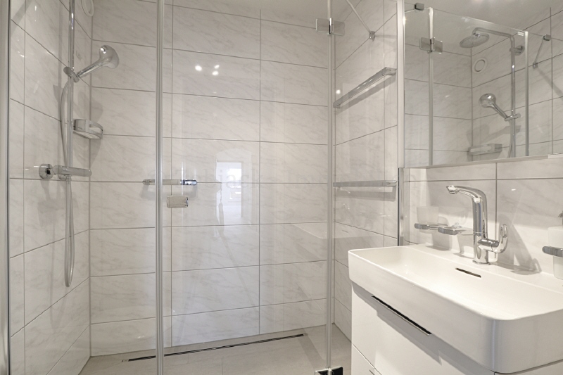 + hell gefliestes Bad mit Dusche und WC