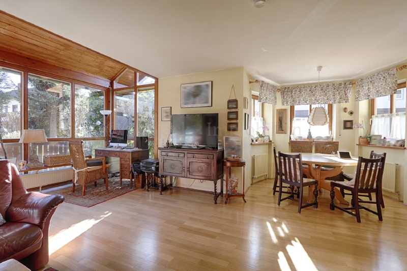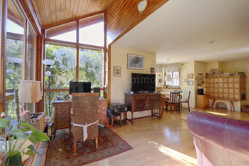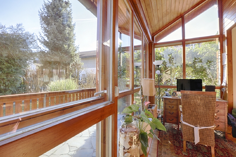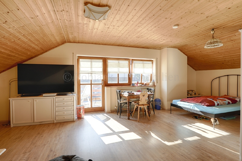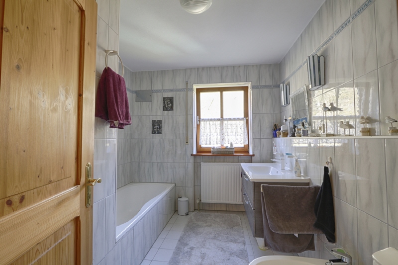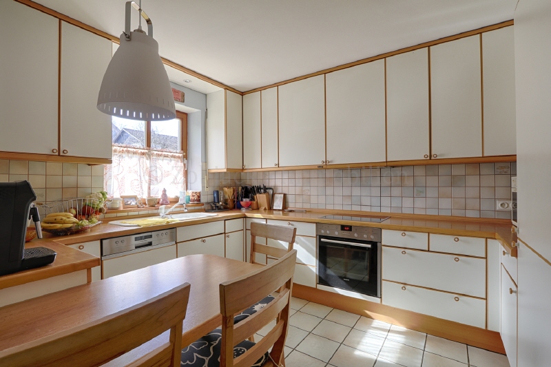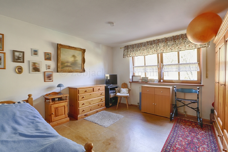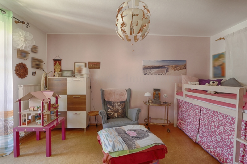 Beschreibung:Dieses freistehende Einfamilienhaus mit Einliegerwohnung befindet sich in einer ruhigen Anliegerstraße auf einem ca. 857 m² großen und liebevoll gestalteten Grundstück mit Blick ins Grüne. Im Erdgeschoss befindet sich die ca. 121 m² große Hauptwohnung. Das Herzstück bildet der großzügige Wohn- und Essbereich mit einem gemütlichen Kachelofen und einem lichtdurchfluteten Wintergarten mit Zugang zu einer großen Terrasse. An den Essbereich schließt sich eine separate Küche an, die mit einer Markeneinbauküche ausgestattet ist. Weiterhin erreichen Sie über den Flur ein geräumiges Elternschlafzimmer, ein helles Tageslichtbad mit Dusche und Badewanne sowie zwei helle Kinderzimmer. Über das Treppenhaus gelangen Sie in die ca. 81 m² große Einliegerwohnung im Dachgeschoss. Hier stehen auch ein heller Wohn- und Essbereich mit Zugang zu einem sonnigen Balkon, eine abgeschlossene Küche, die ebenfalls mit einer Einbauküche ausgestattet ist; ein helles Tageslichtbad mit Dusche, eine Diele sowie ein Schlafzimmer mit separater Ankleide und Stauraum zur Verfügung. Im Untergeschoss befinden sich im vorderen Teil des Gebäudes ein Hauswirtschafts-, ein Haustechnik- sowie ein großer Hobbyraum mit Werkstatt. Durch die abfallende Hanglage des Grundstückes liegt der hintere Teil des Untergeschosses auf dem Höhenniveau des Gartens. Daher sind die drei Hobbyräume mit großen Fenstern ausgestattet und verfügen teilweise über einen ebenerdigen Zugang zum Garten. Zusätzlich befindet sich hier noch ein helles Tageslichtbad mit Dusche. Darüber hinaus stehen eine Einzelgarage sowie ein KFZ-Stellplatz zur Verfügung. Insgesamt bietet dieses gepflegte Einfamilienhaus mit Einliegerwohnung vielfältige Nutzungsmöglichkeiten und eignet sich hervorragend für Familien mit Kindern, für die Kombination von Wohnen und Arbeiten unter einem Dach, als Mehrgenerationenhaus oder als Kapitalanlage.