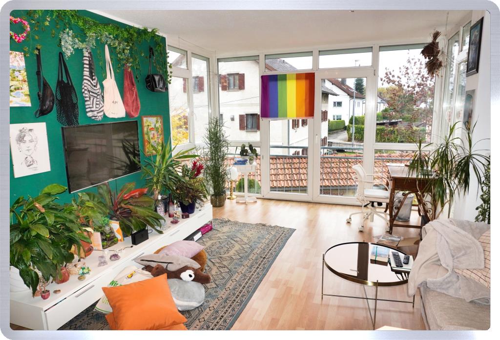 In dieser Wohnung ist ein schöner heller Wohnbereich. Der Wohnbereich hat eine schöne Größe und bietet viele Einrichtungsmöglichkeiten. Hier ist auch ein Wintergarten der großzügig geöffnet werden kann.