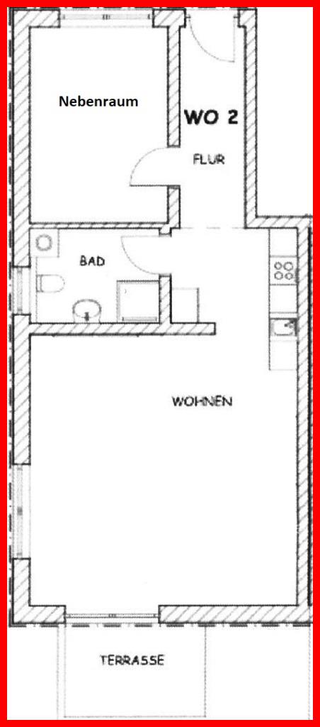 TOP: Für den Mietpreis wurden nur ca. 53 m² berechnet, der 2 te. Raum in der Wohnung mit ca. 12 m² Nebenfläche wurden auf Grund das kein Keller zur Verfügung steht nicht im Mietpreis berechnet.