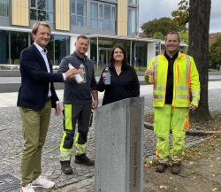 v.l.n.r. Bürgermeister Sebastian Thaler, Martin Maurus (Bauhof), Dr. Claudia Tischner (Sachgebiet Umwelt Klima und Mobilität) und Martin Lohmeier (Bauhof)