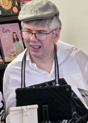 Bildunterschriften: Die Teilnehmer*innen der Förderstätte Doris Ehlert (Bild 1), Wilfried Schraufstetter (Bild 2) und Theresa Schwarzbözl (Bild 3) begeisterten das Publikum mit eigenen Texten, Geschichten und Gedichten. Unterstützt wurden sie dabei von Sprachausgabegeräten und einer Kommunikations-App auf dem iPad (GoTalk), die es auch Menschen mit eingeschränkter Lautsprache ermöglichen, aktiv am Austausch teilzunehmen.