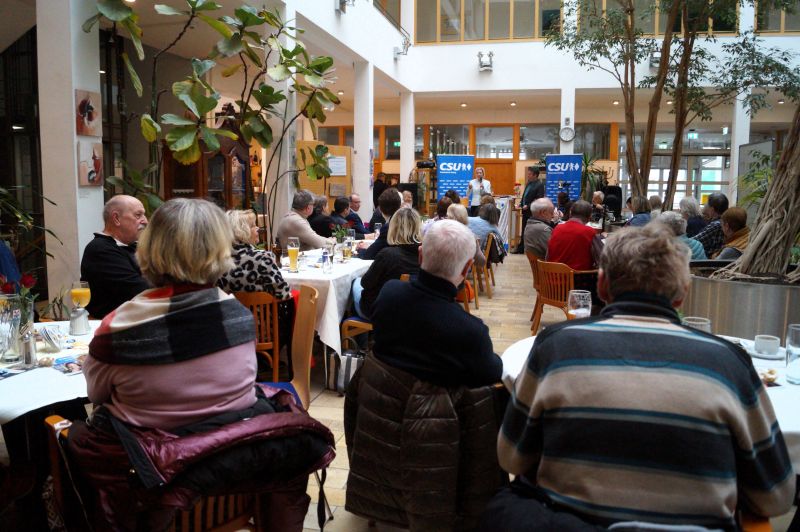 Im vollbesetzten Saal des ASZ wurde erst einmal gemeinsam gefrühstückt. Angelika Niebler bemerkte augenzwinkernd, dass es auch nicht oft vorkomme, dass man VOR der Arbeit Essen kann.