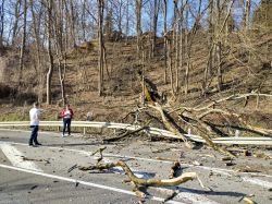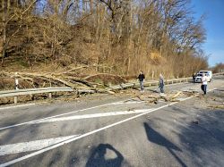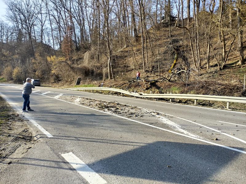 Mitglieder des nahen Kleingartenvereins hörten den Aufprall und halfen sofort. Sie stoppten den Verkehr und haben den Baum von der Fahrbahn entfernt sowie die Straße gesäubert. Die Aufräumarbeiten haben circa zwanzig Minuten gedauert.